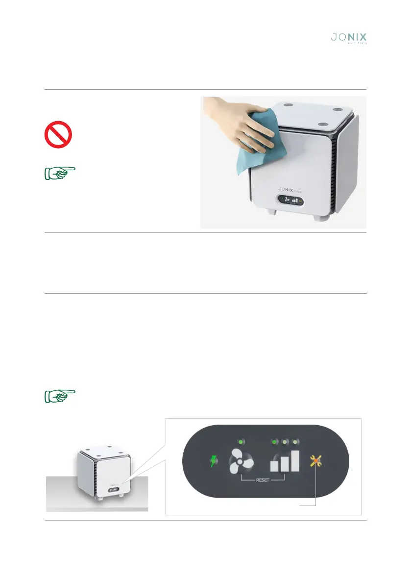looking dull. The JONIX cube signals the need for replacement of the ionising tubes, through