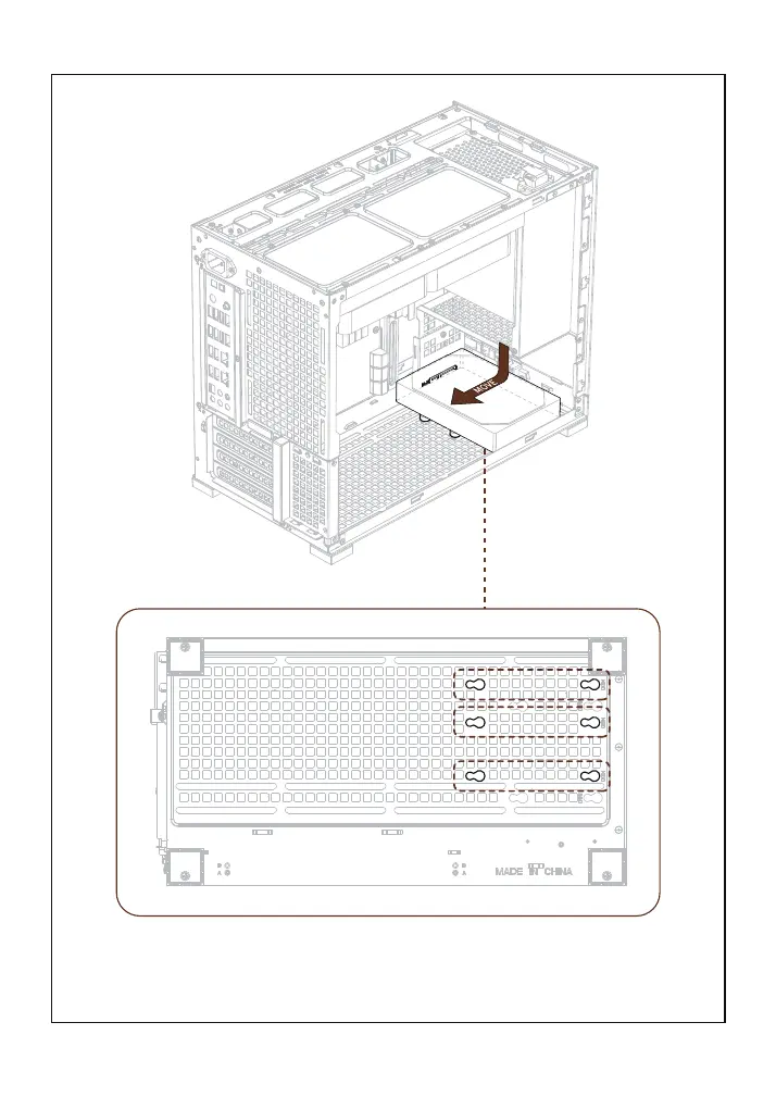 Tip: Using this mode to install the HDD, the bottom can simultaneously accommodate a 14cm