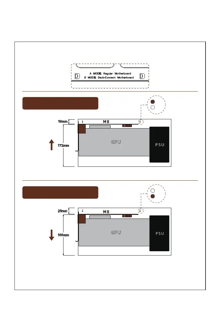 2. B模式下如果安装背插型主板,需仔细整理背部线材后,再安装背部侧板完成装机