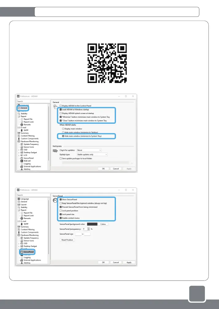 4.In "Hardware Monitoring" - "SensorPanel" setting, check the following items and click "Apply":
