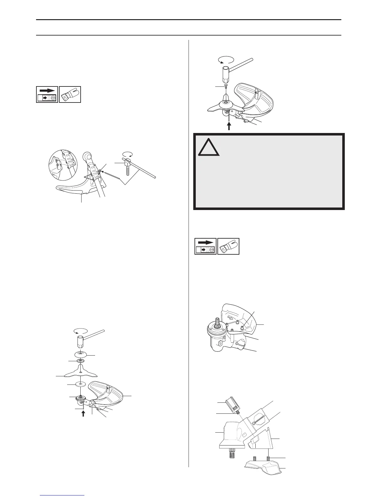 • Then fasten the blade guard (A) with 4 bolts (L) in the