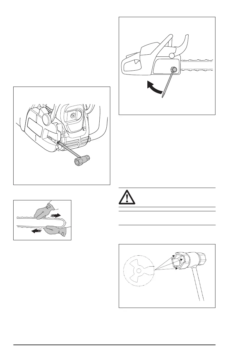 11. Maintenir l'extrémité du guide-chaîne et serrer