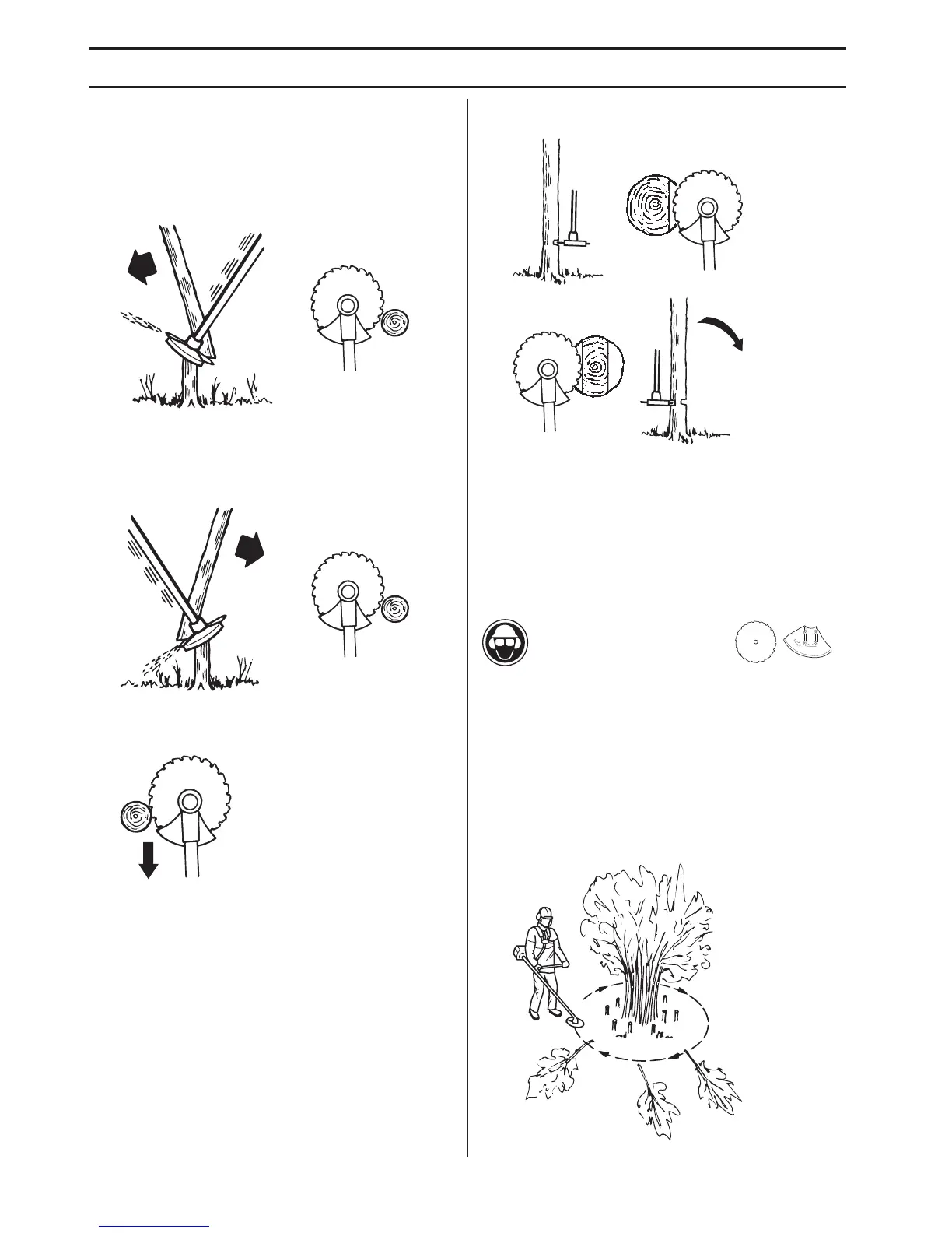 • With groups of hardwood stems, first clear around the