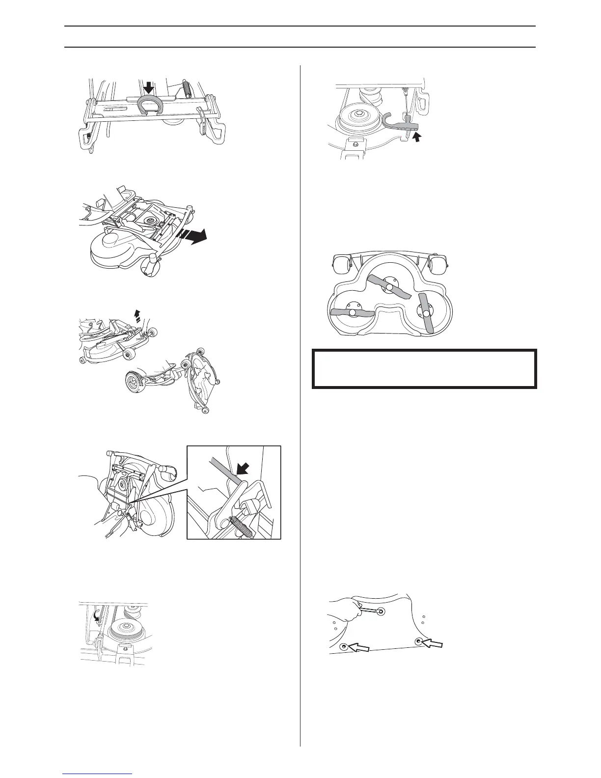 down and slide in the unit. Replace the cutting height stay