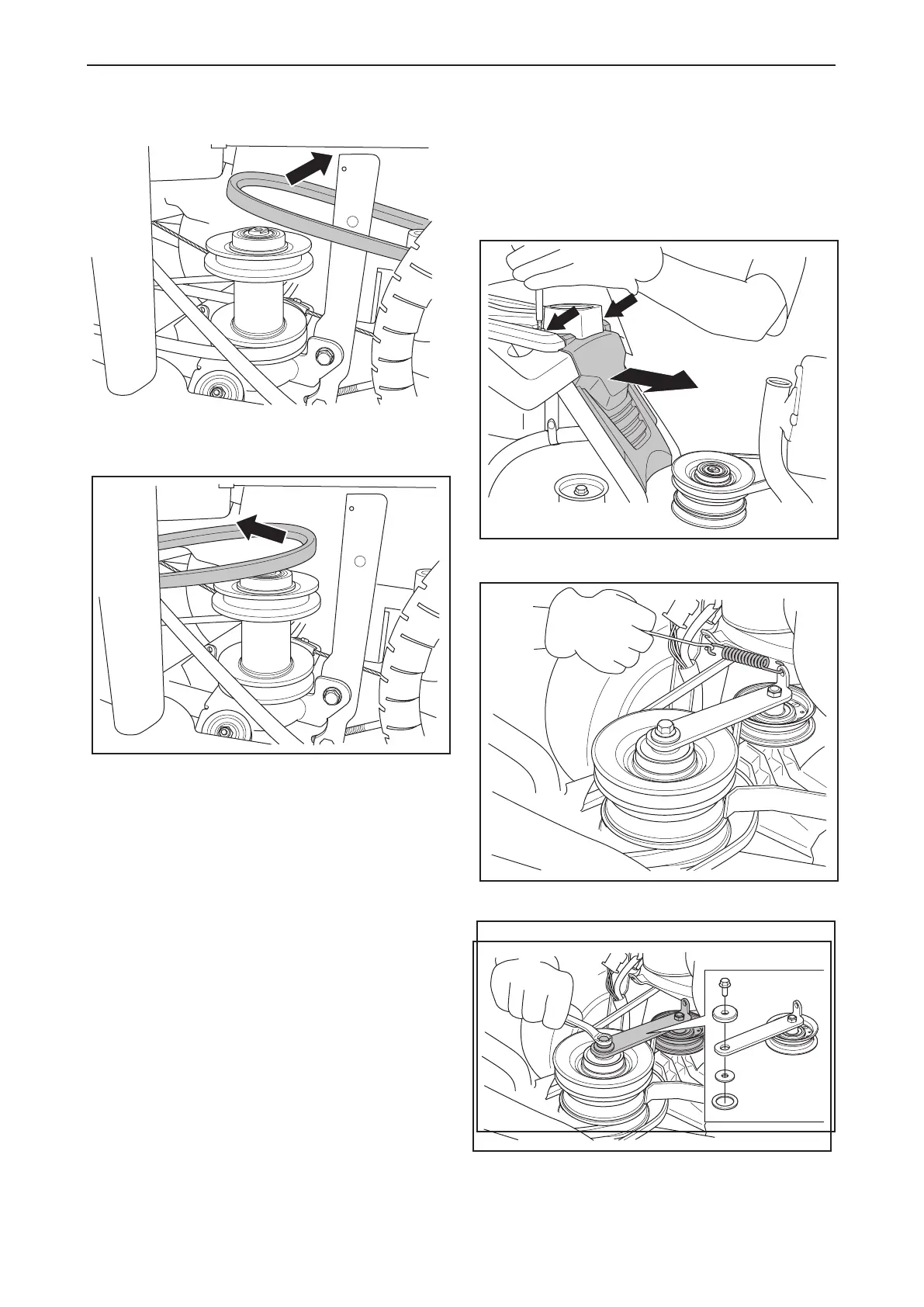 8 Lift o belt 4 over the unit belt pulley and
