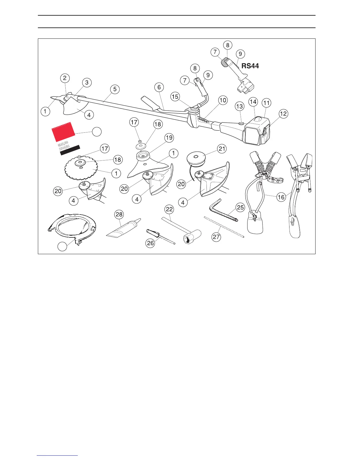 Jonsered GR41/50 - Machine Identification and Components; Clearing Saw Parts Identification (RS44)