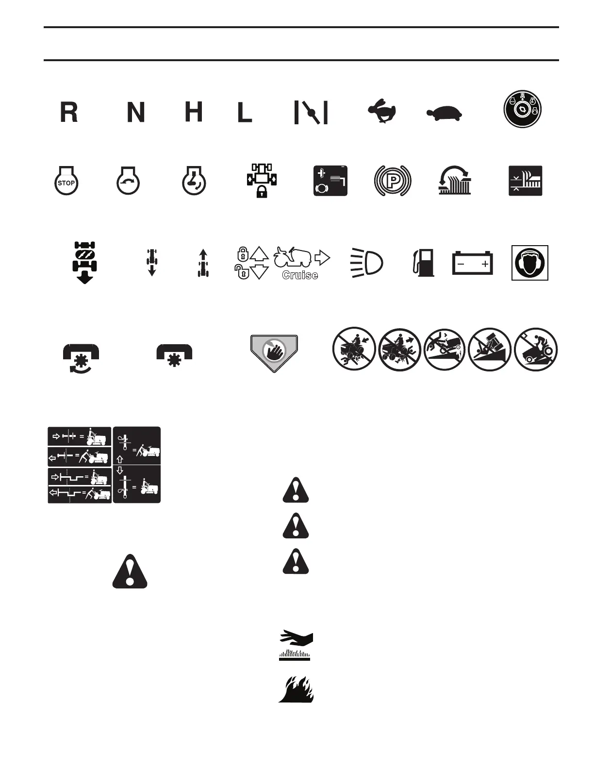 Estos símbolos pueden aparecer sobre su tractor o en la literatura proporcionada con el producto. Aprenda y comprenda sus significados.