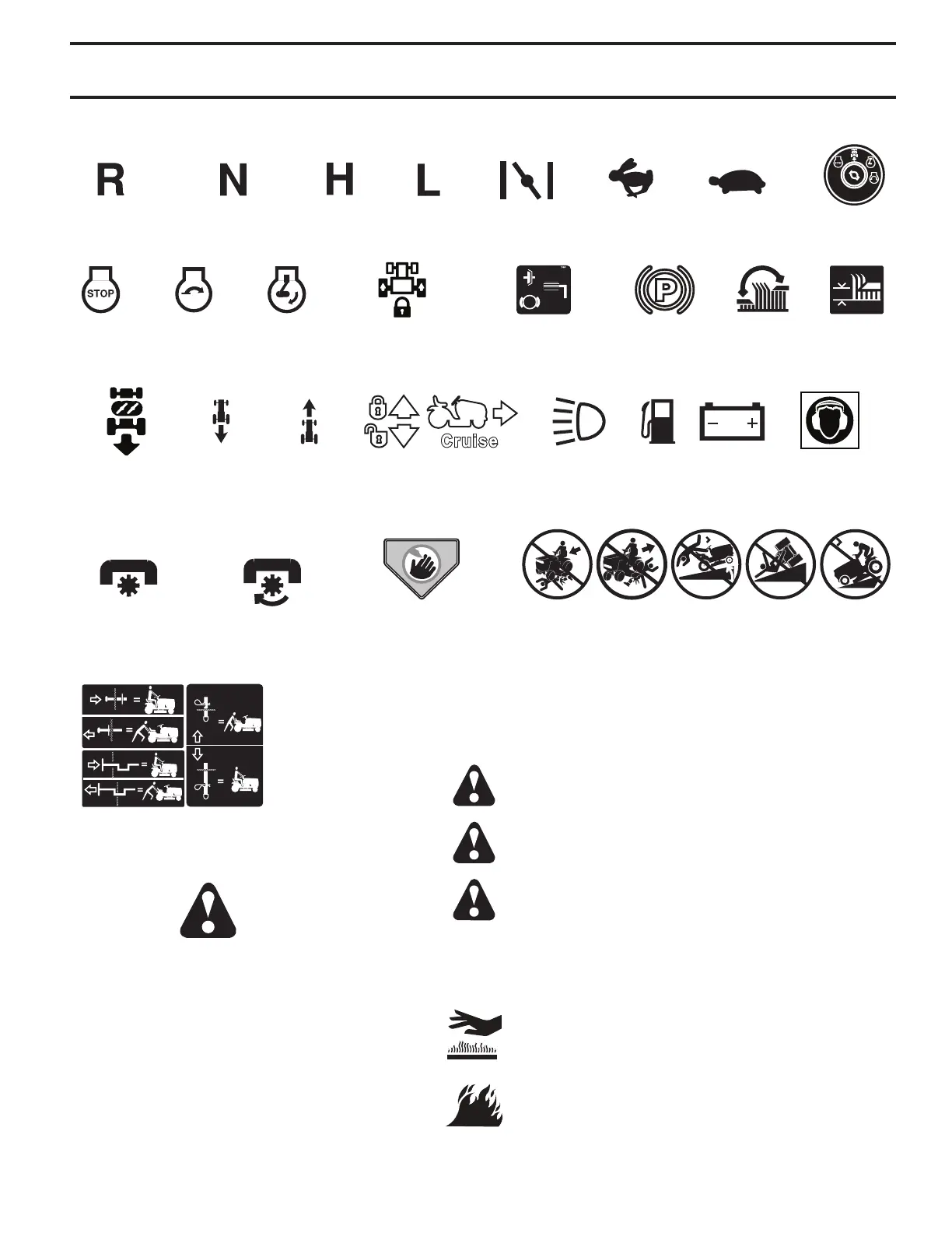 These symbols may appear on your tractor or in literature supplied with the product. Learn and understand their meaning.