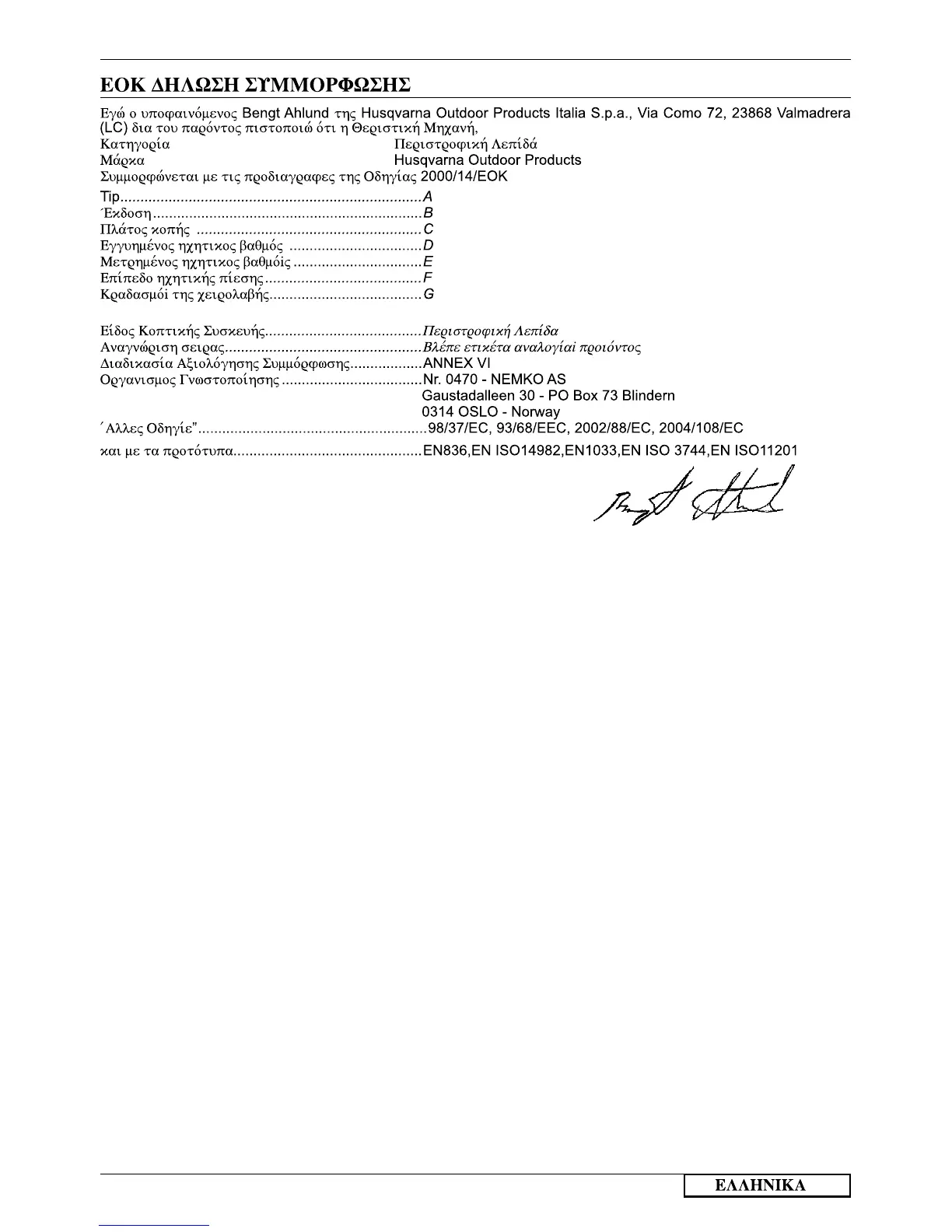 Husqvarna Outdoor Product Italia S.p.A.