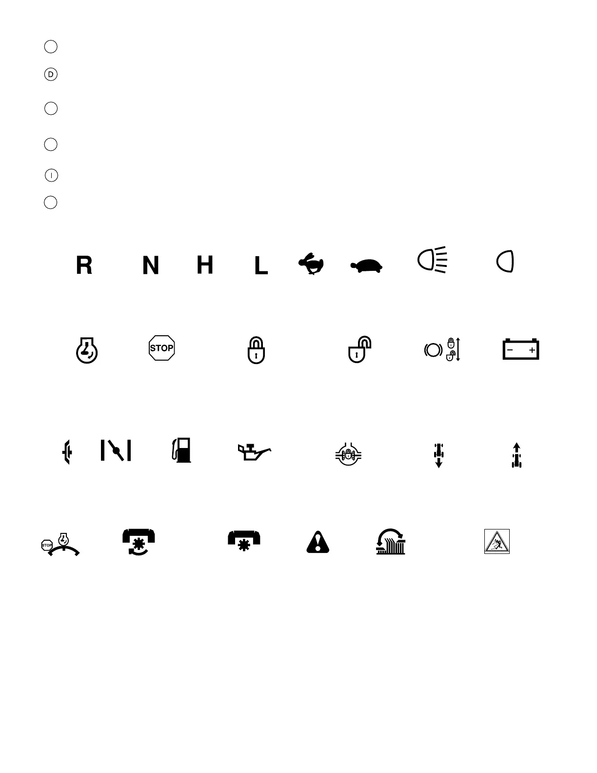 These symbols may appear on your tractor or in the literature supplied with the product. Learn and understand their meaning.