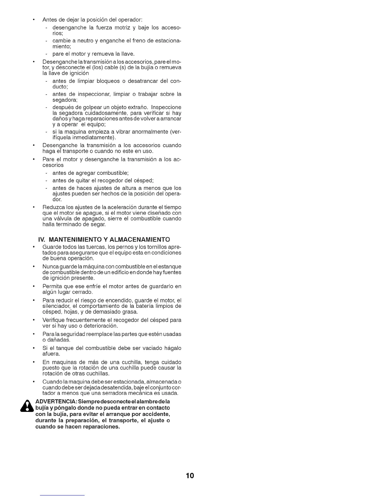 IV. MANTENIMIENTO Y ALMACENAMIENTO