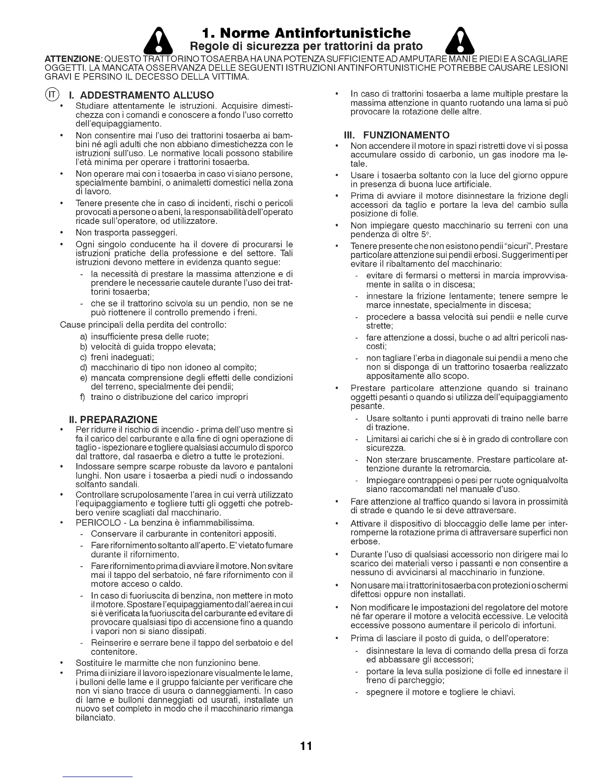 ATTENZlONE: QUESTO TRATTO RINO TOSAERBA HA UNA POTENZA SUFFICI ENTE AD AM PUTARE MAN I E PIEDI E A SCAGLIARE