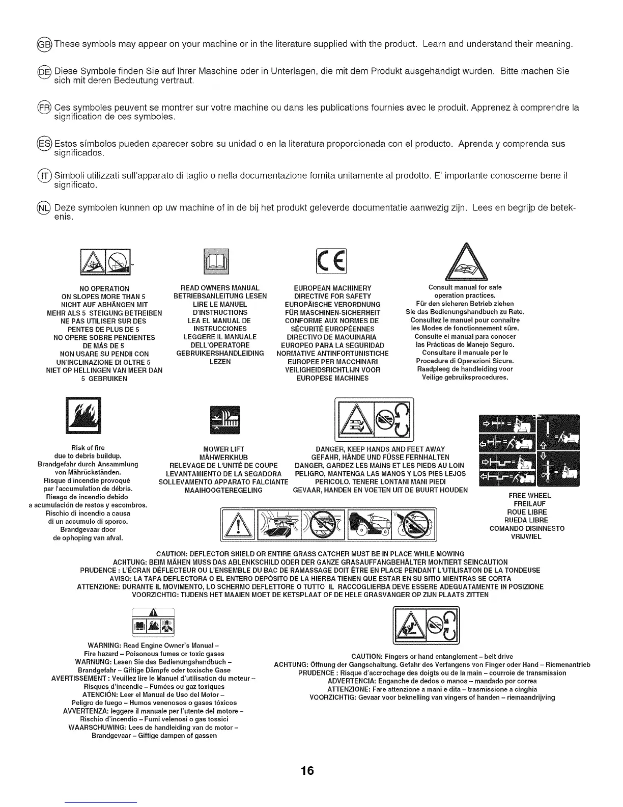 ATTENZmONE:DURANTE IL MOVIMENTO, LO SCHERMO DEFLETTORE O TUTTO IL RACCOGLIERBA DEVE ESSERE ADEGUATAMENTE IN POSIZmONE