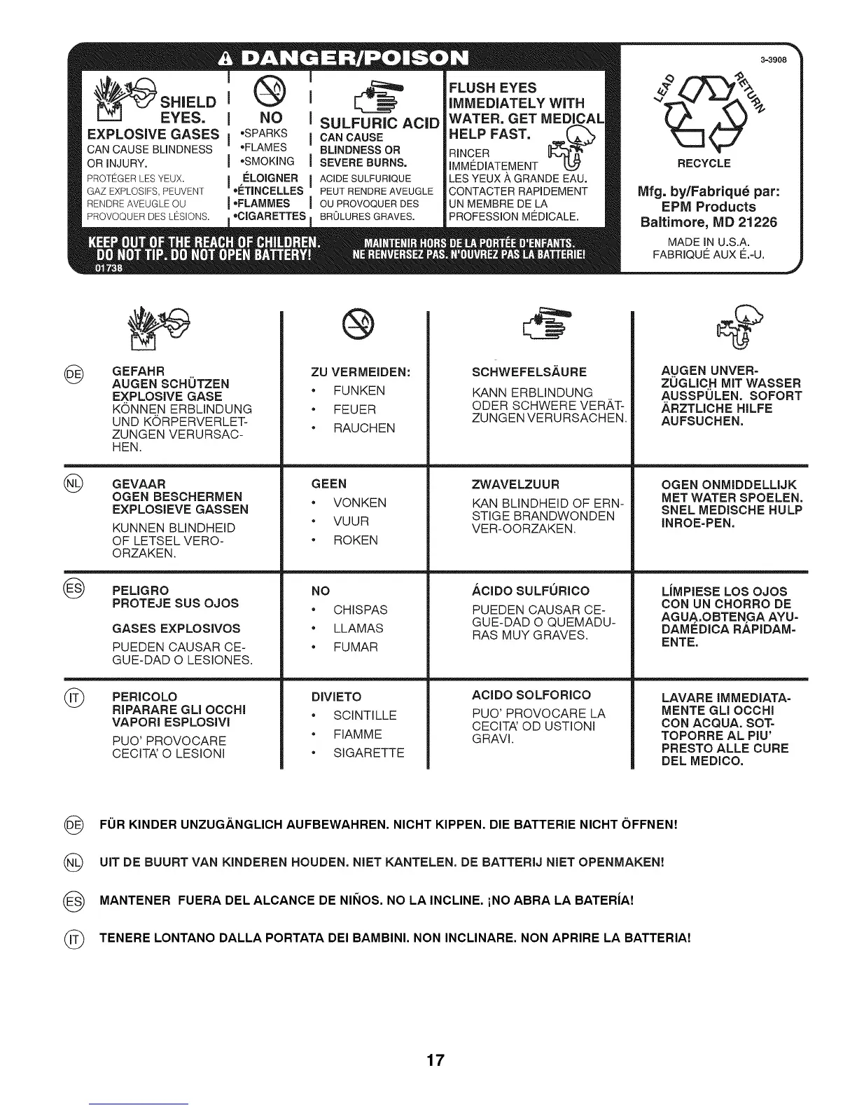 (_ TENERE LONTANO DALLA PORTATA DEI BAMBINI. NON INCLINARE. NON APRIRE LA BATTERIA!