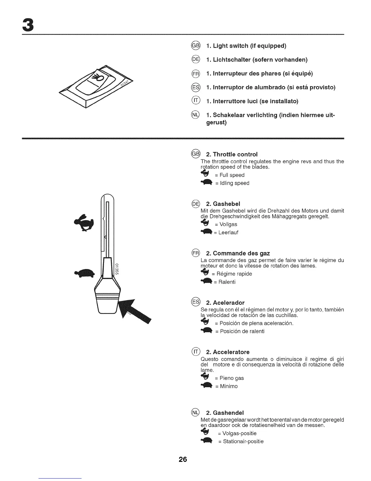 Met de gasregetaar wordt her toerentalvan de motor geregetd