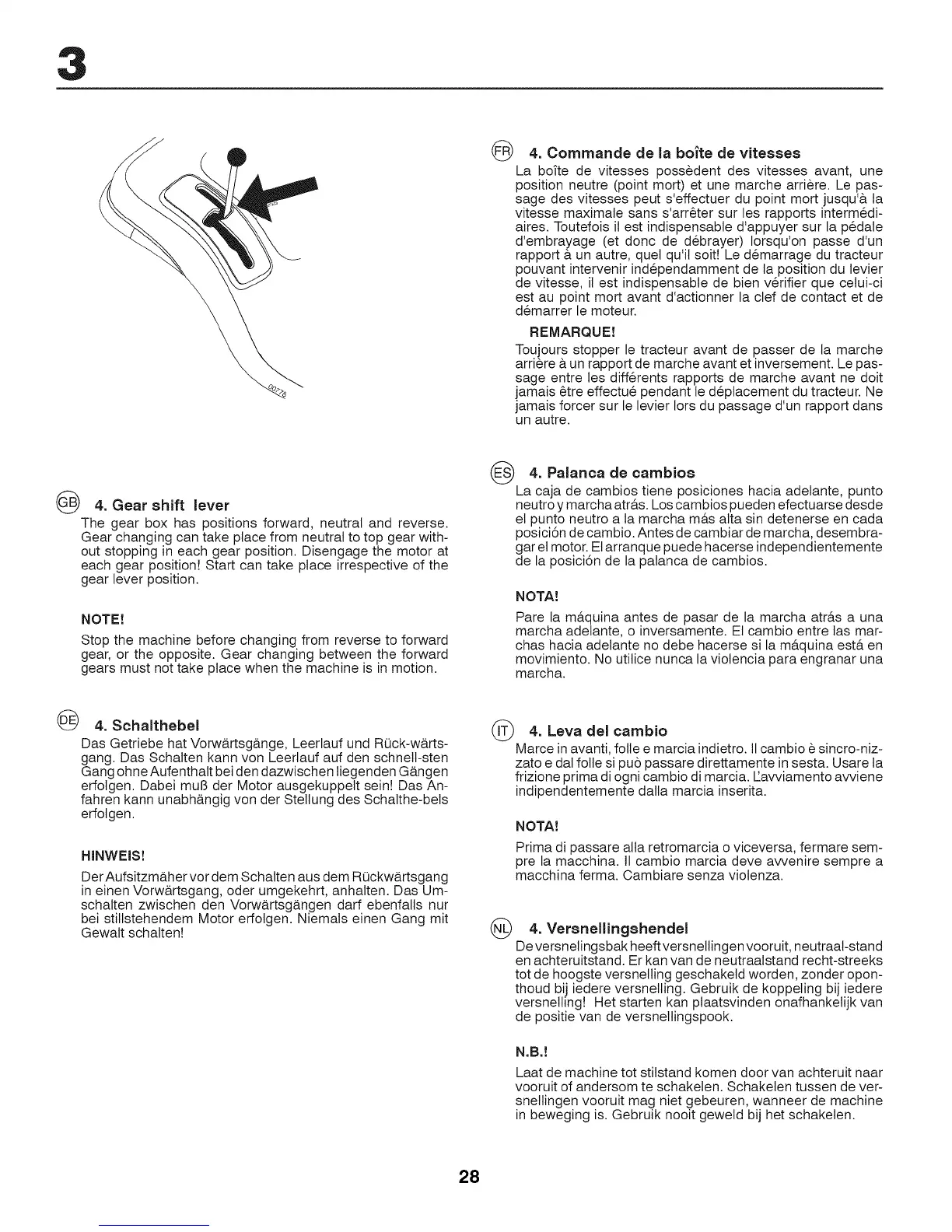 bei stillstehendem Motor erfolgen. Niemals einen Gang mit