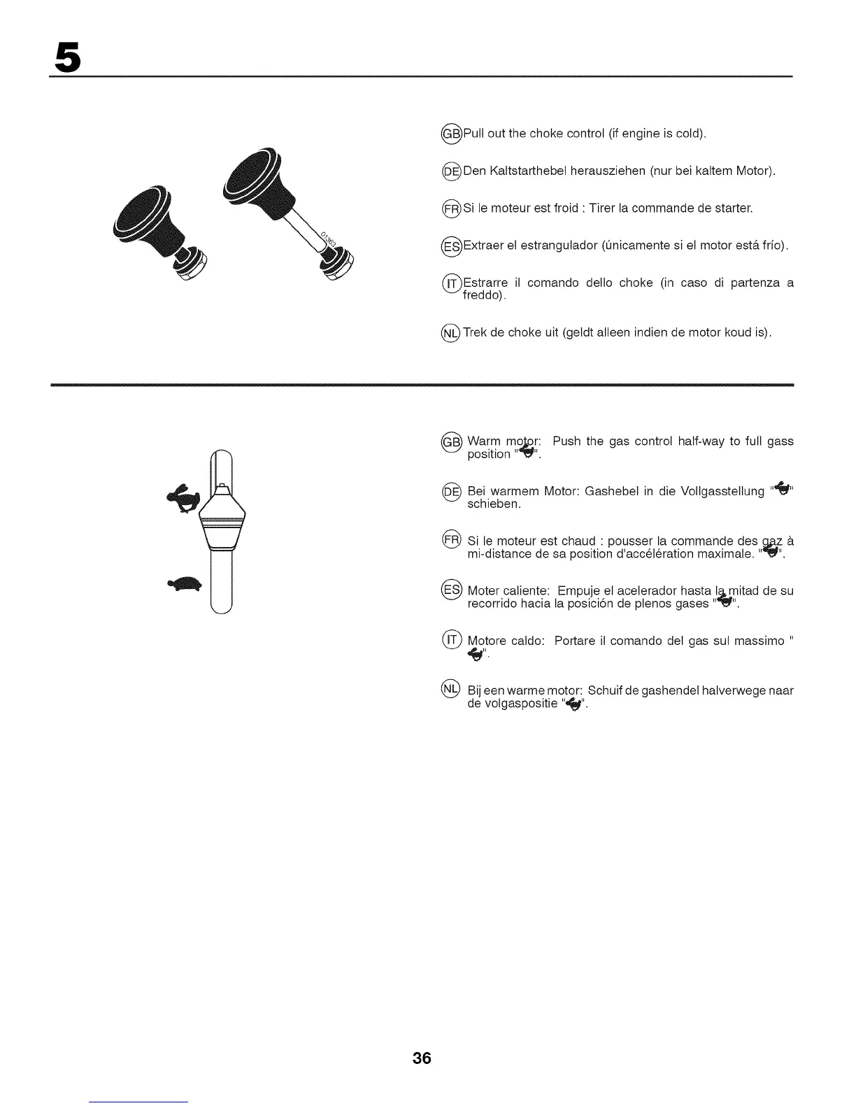 (_) Trek de choke uit (getdt alleen indien de motor koud is).