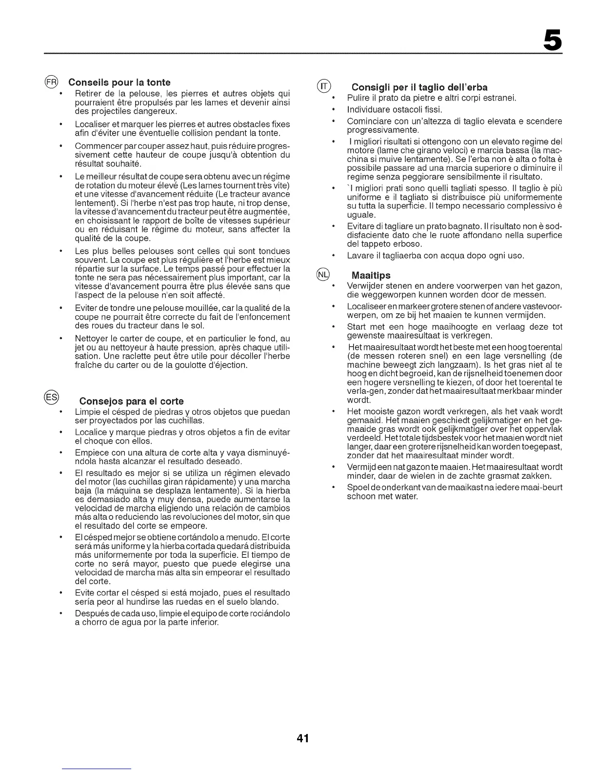 • Vermijd een nat gazon te maaien. Het maairesuttaat wordt
