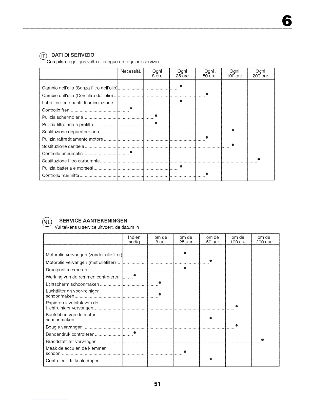 Pulizia raffreddamento motore .............................................................................. •