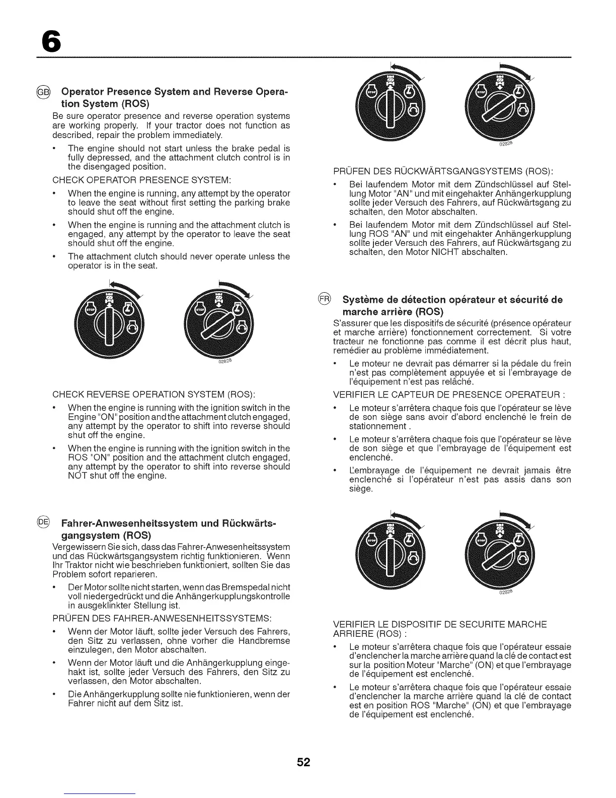 Be sure operator presence and reverse operation systems