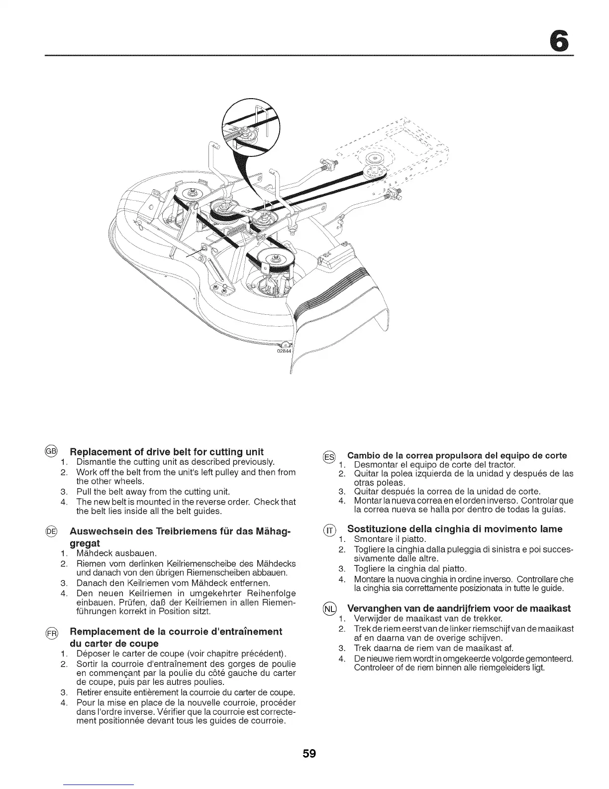 3. Retirer ensuite enti@ement la courroie du carter de coupe.