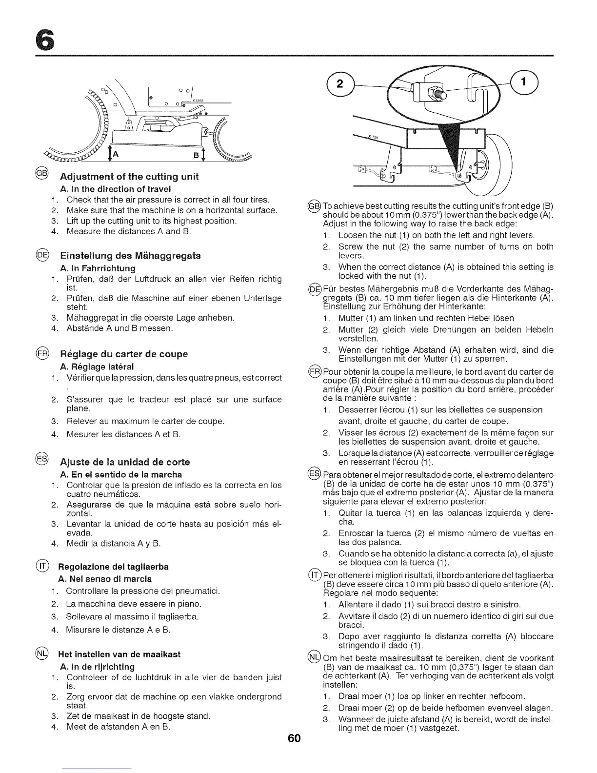 (B) van de maaikast ca. 10 mm (0,375") lager te staan dan