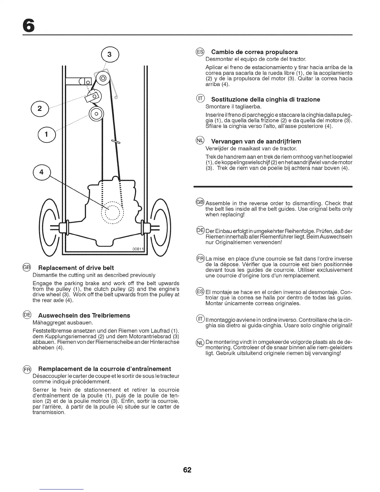 sion (2) et de la poulie motrice (3). Enfin, sortir la courroie,