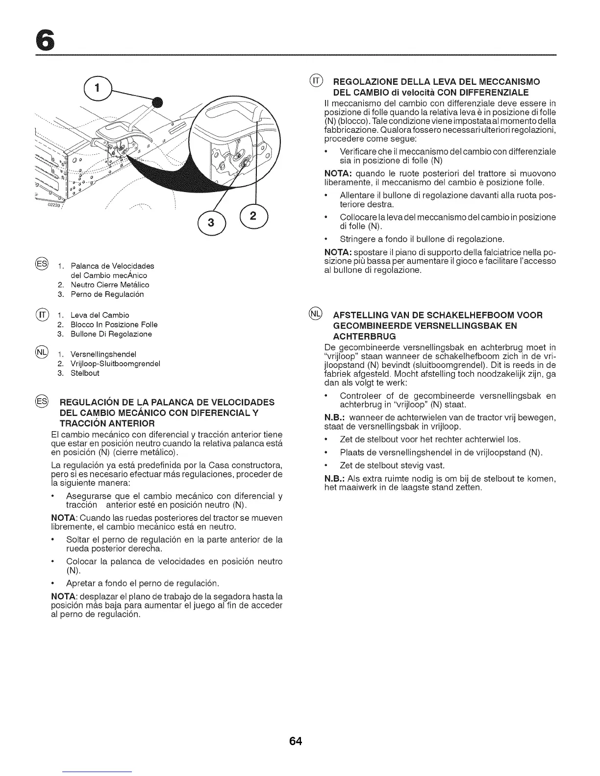 NOTA: spostare it piano di supporto della falciatrice nella po-
