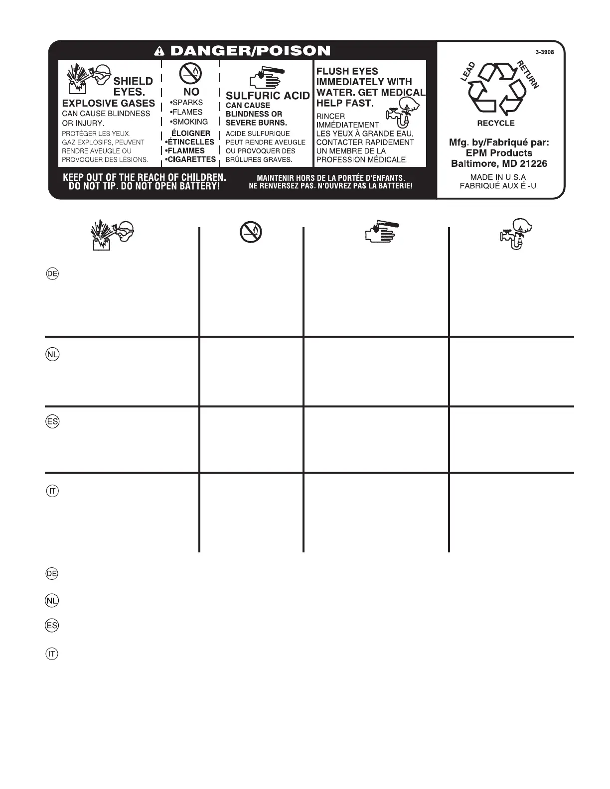 TENERE LONTANO DALLA PORTATA DEI BAMBINI. NON INCLINARE. NON APRIRE LA BATTERIA!