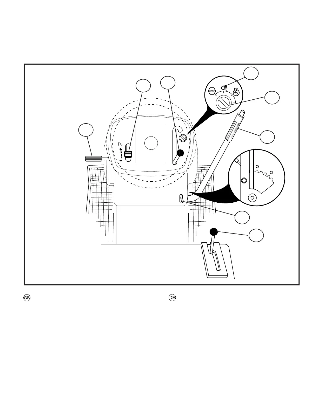 2. Gas- und Kaltstarthebel.