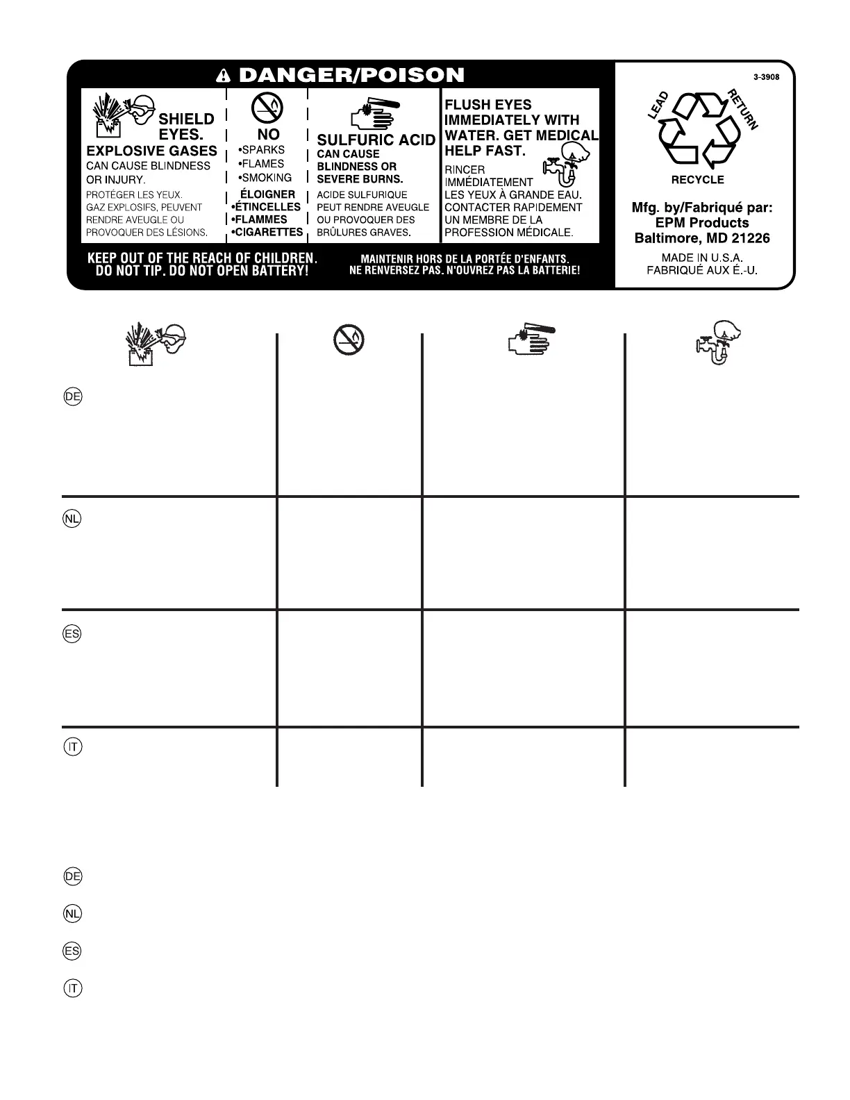 TENERE LONTANO DALLA PORTATA DEI BAMBINI. NON INCLINARE. NON APRIRE LA BATTERIA!