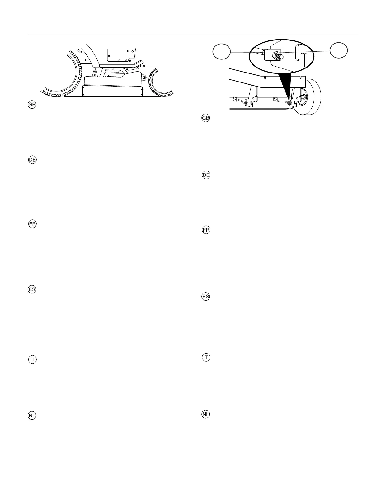 (B) van de maaikast ca. 10 mm (0,375") lager te staan dan