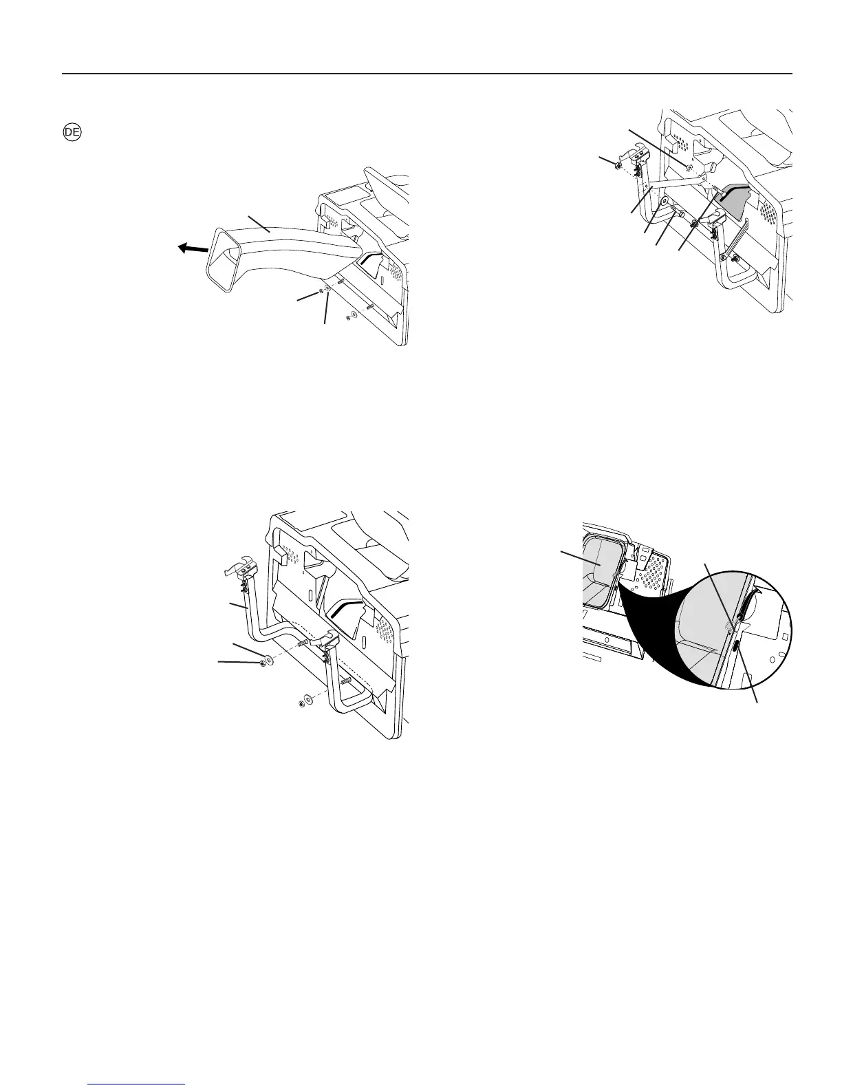 • Nehmen Sie den Auswurfkanal aus dem hinteren Teil des