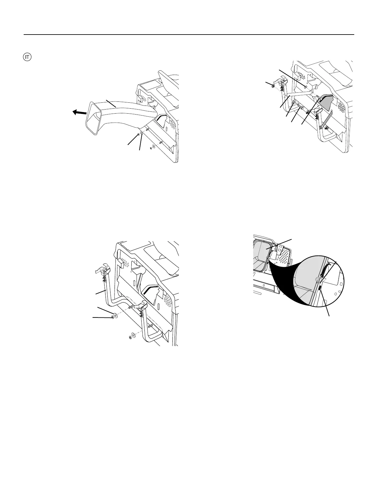 • Rimuovere il convogliatore dalla parte posteriore del