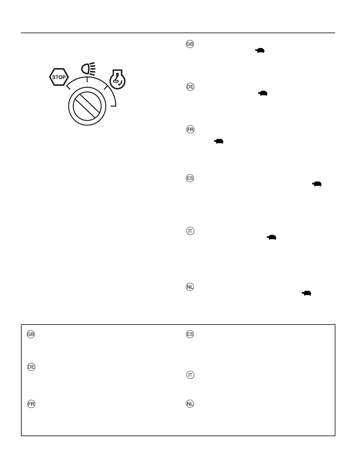 Portare il comando del gas su “ ” (lento). Portare la leva di