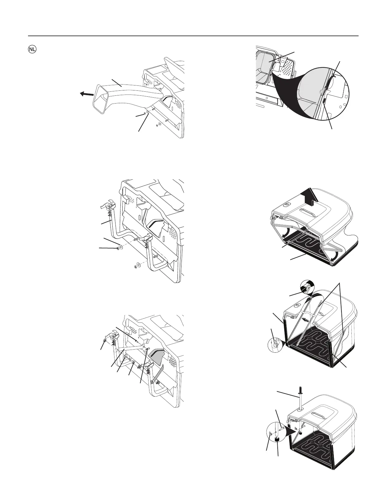 N.B.: De haak van de riem moet alleen door de afvoertrech-