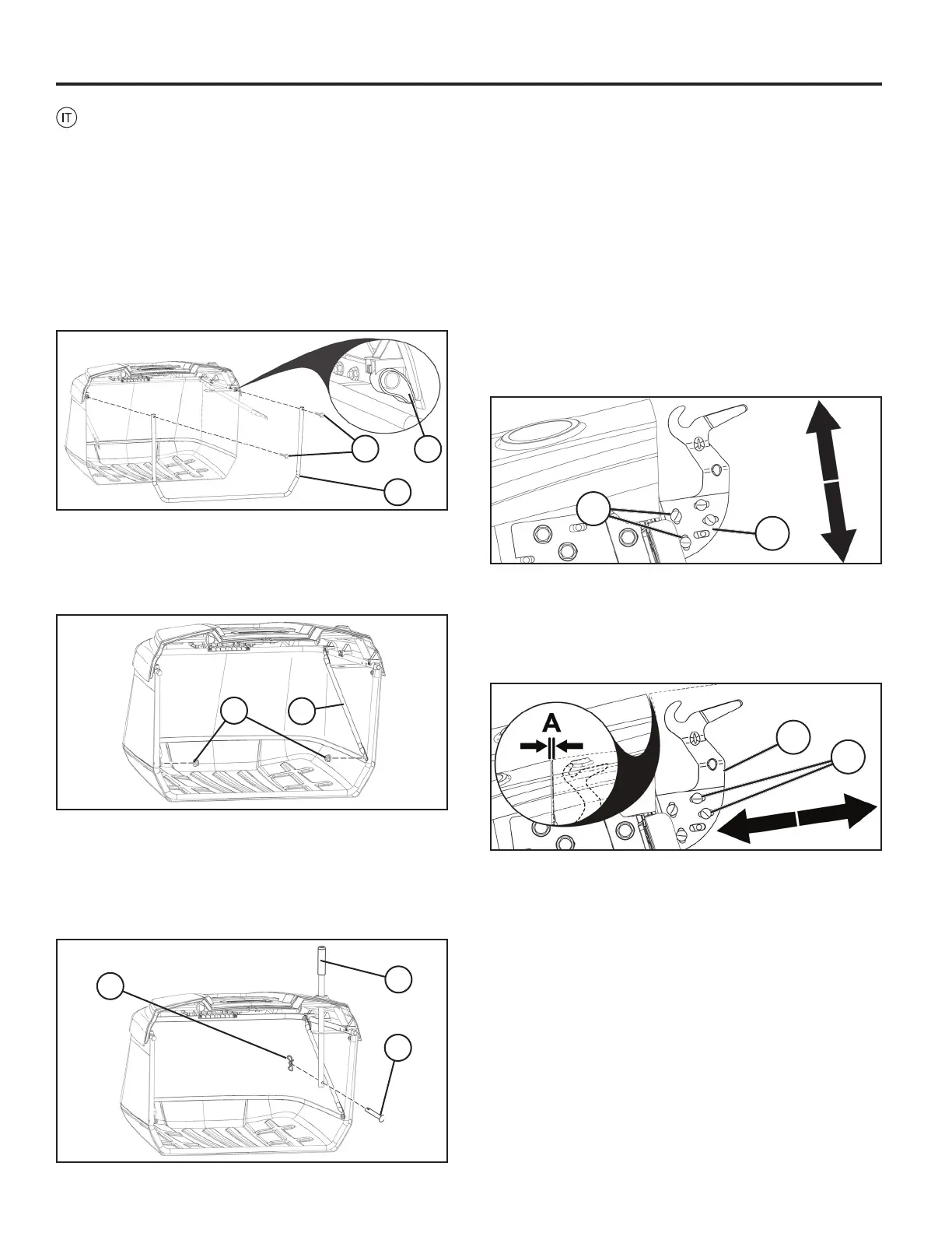 • Togliere i controdadi 1/4”-20 (4) sul fondo del telaio anteriore
