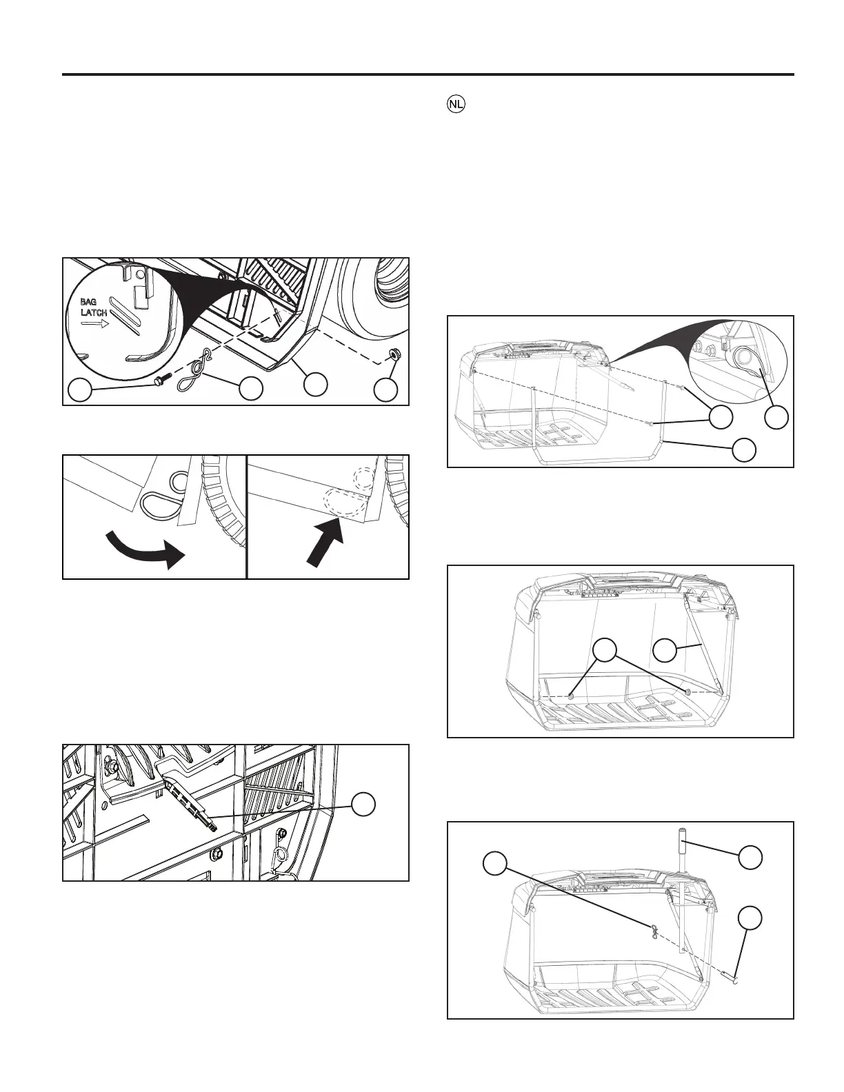 • Verwijder de (¼”-20) borgmoeren (4) aan de onderkant van