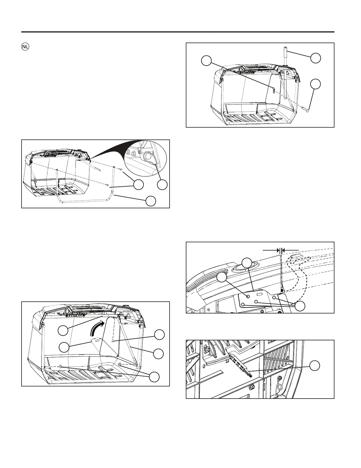 • Verwijder de (1\4”-20) borgmoeren (4) aan de onderkant van