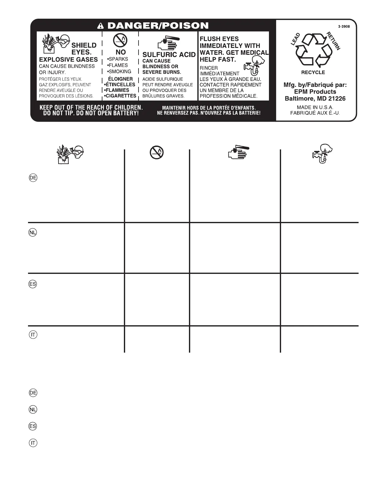 TENERE LONTANO DALLA PORTATA DEI BAMBINI. NON INCLINARE. NON APRIRE LA BATTERIA!