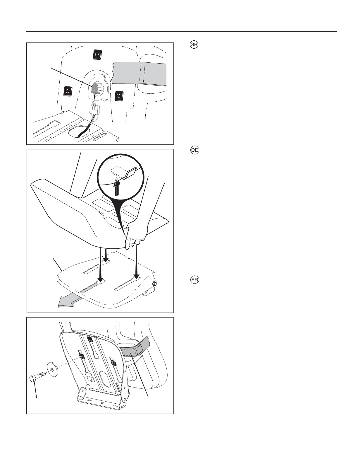 dans la fente puis repousser le siège vers l'arrière du tracteur.