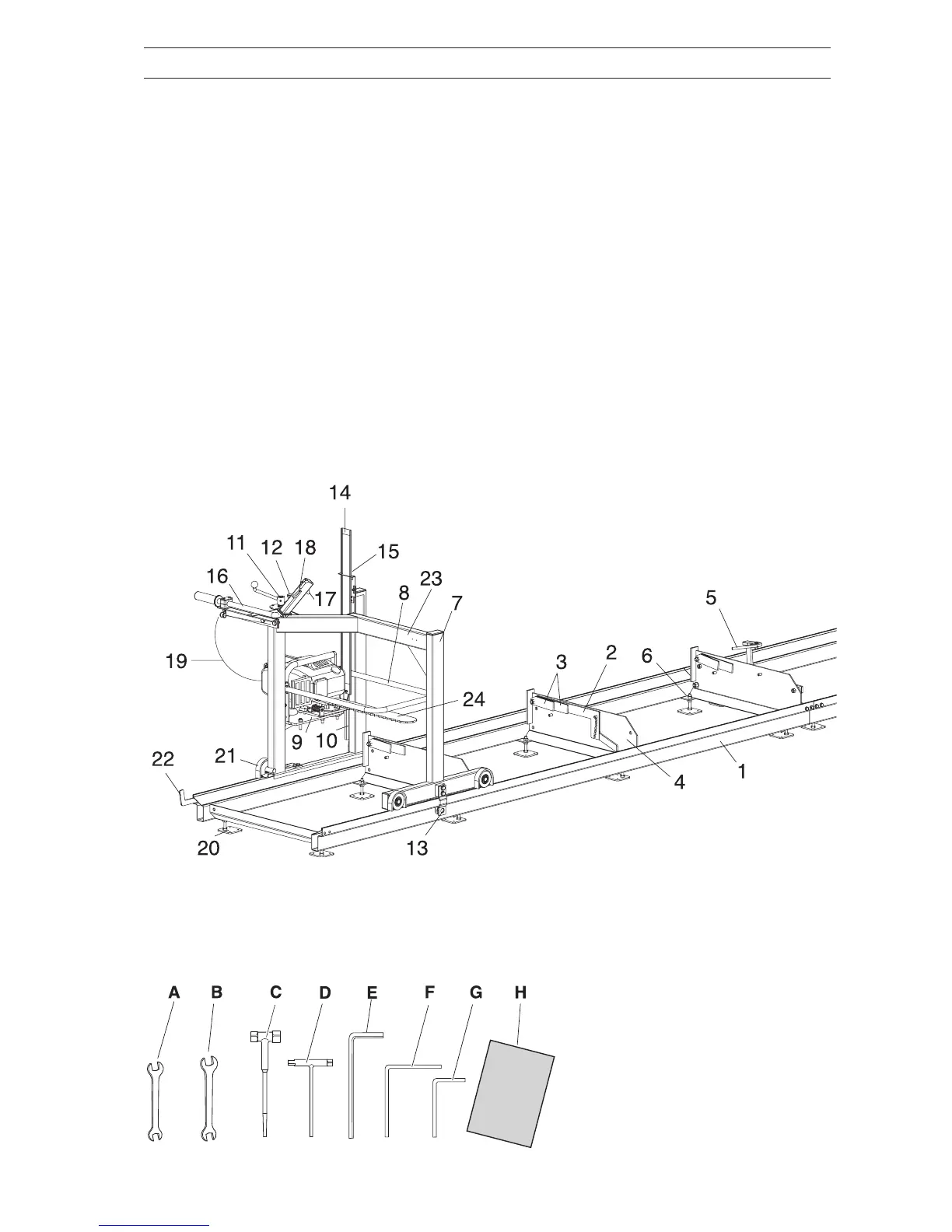 The one-man sawmill consists of two main parts: