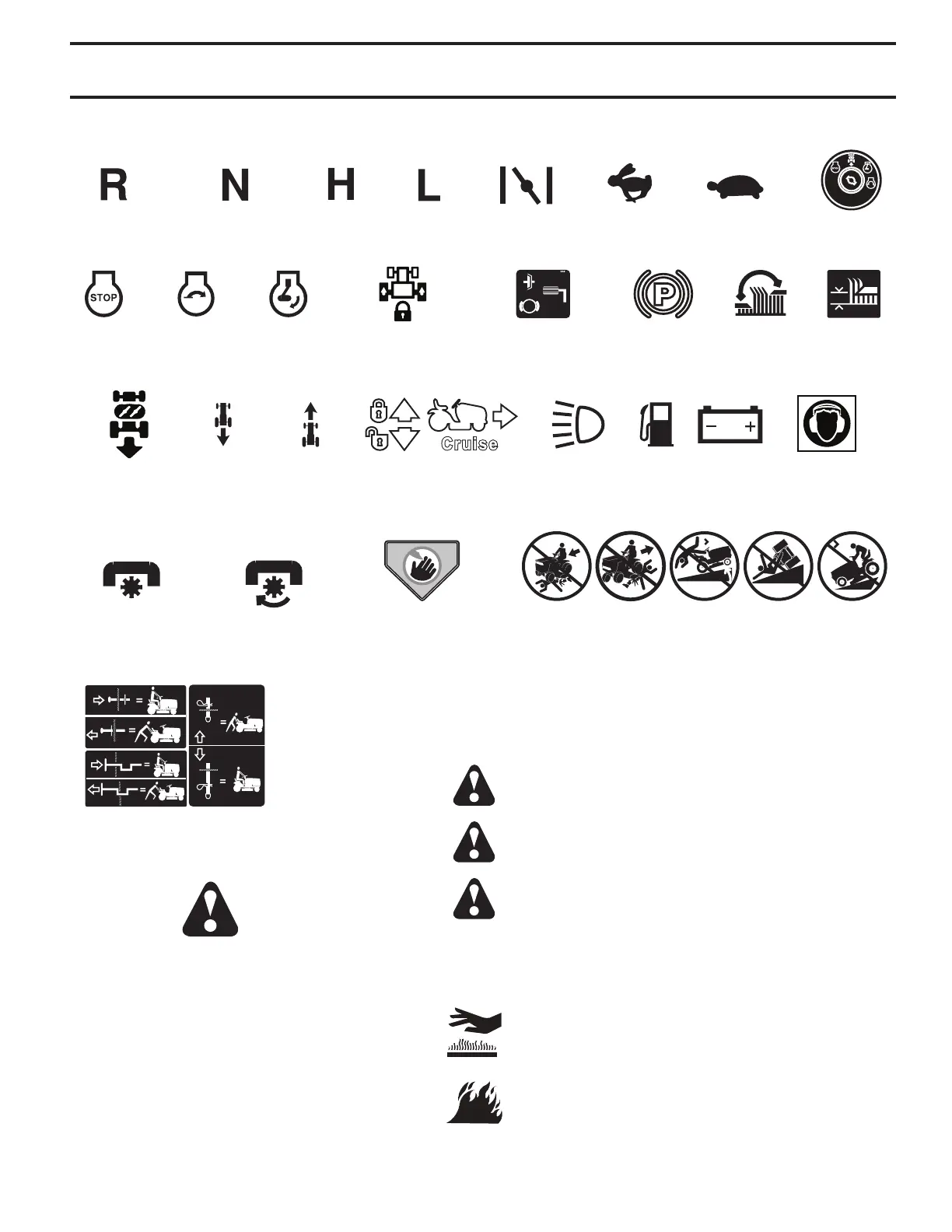 These symbols may appear on your tractor or in literature supplied with the product. Learn and understand their meaning.
