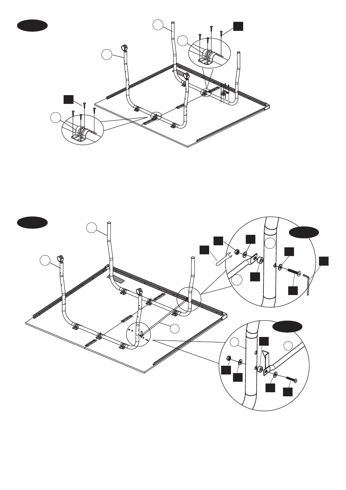 9. Sujete las patas (#2 y #3) a la mesa con los soportes (#11)