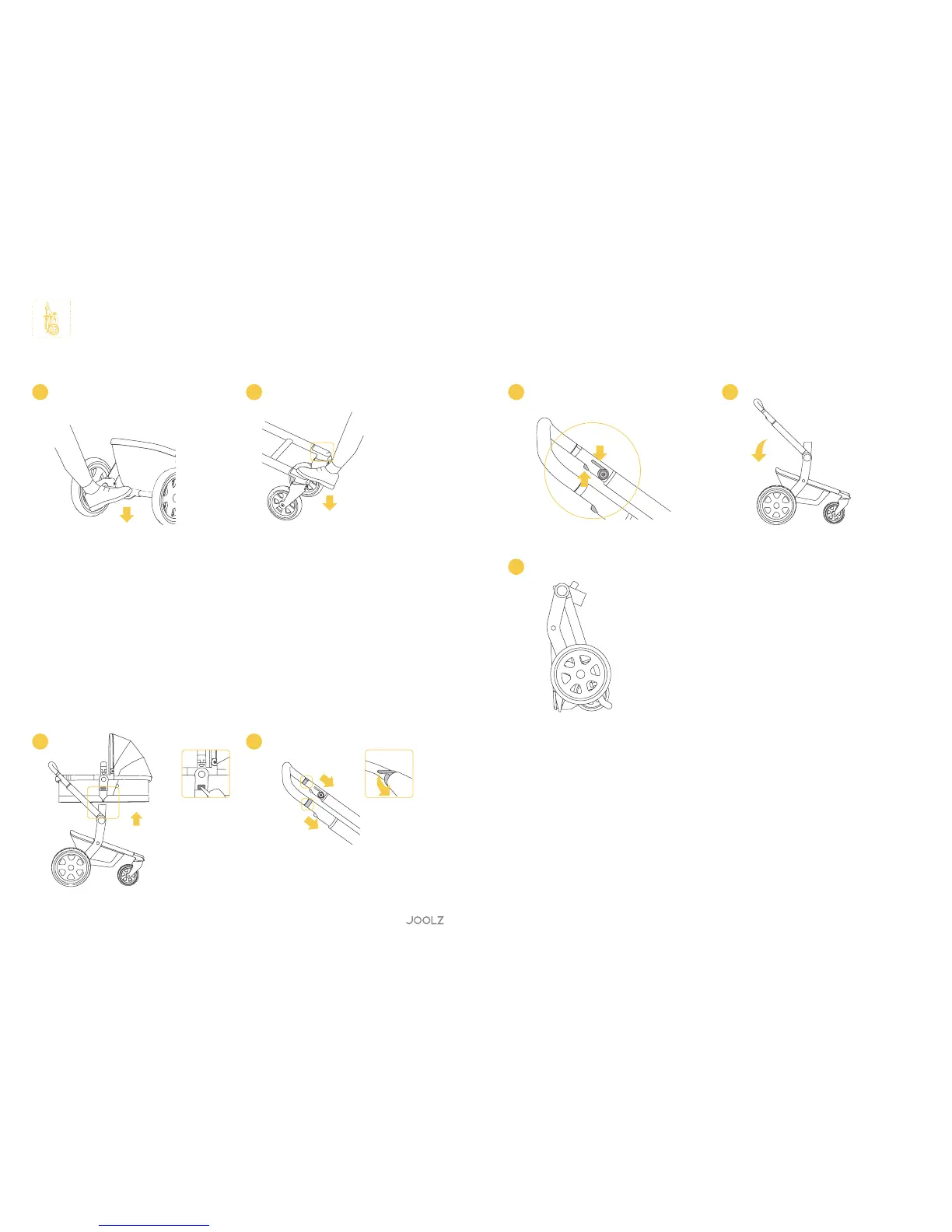 WARNING: always apply the swivel lock on the front wheels when folding the pushchair.
