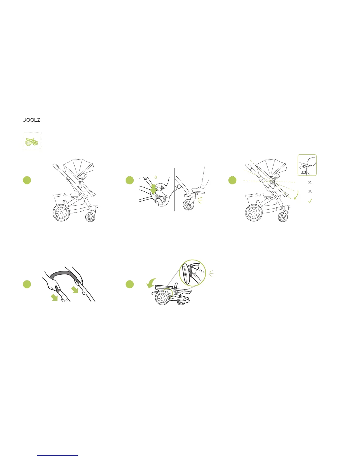 WARNUNG: Stelle die Schwenkräder immer fest, wenn Du den Kinderwagen zusammenklappst. Wenn Du dies versäumst, kann dies, vor allem in