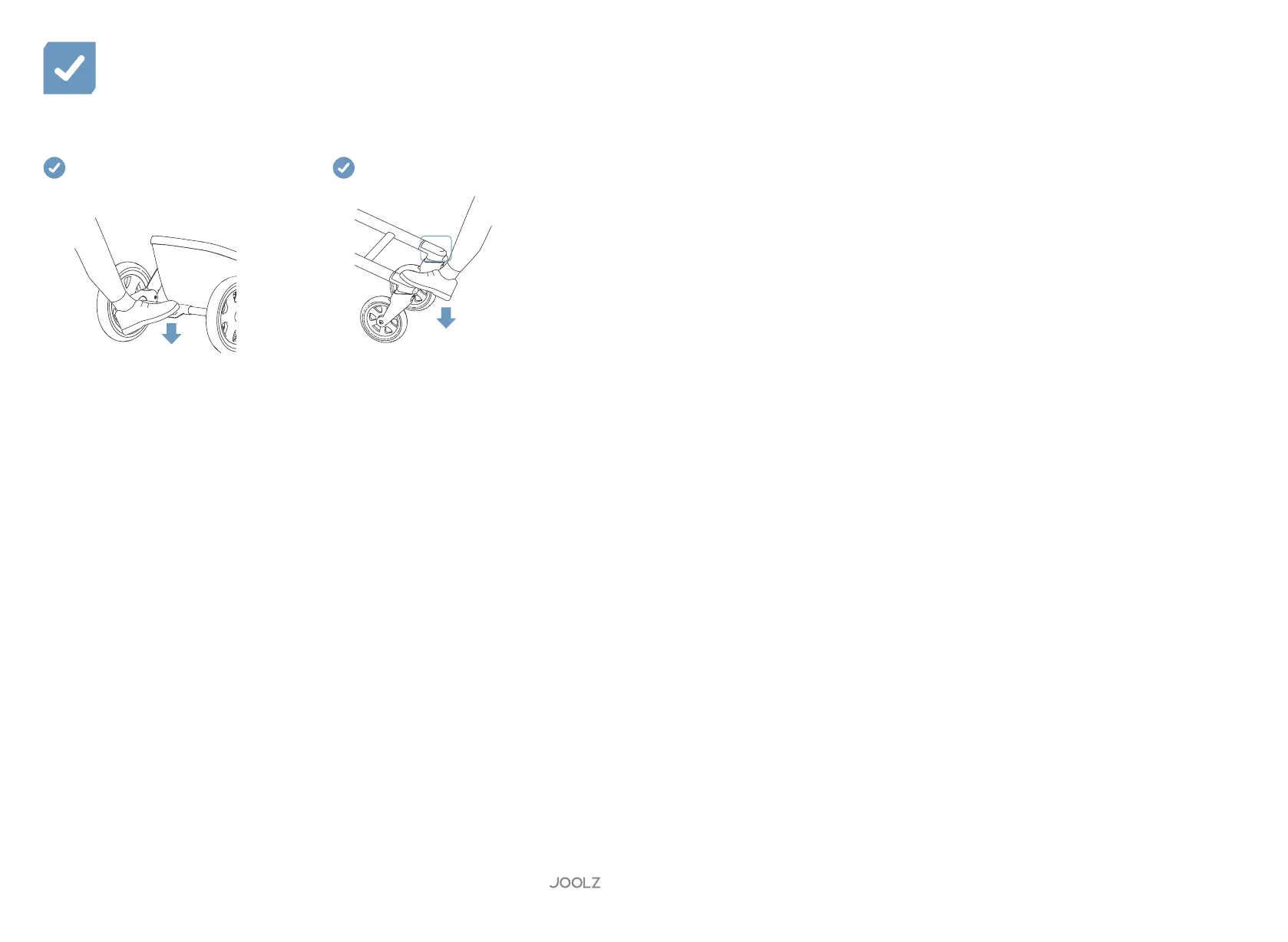 WARNING: always apply the swivel lock on the front wheels when folding the pushchair.