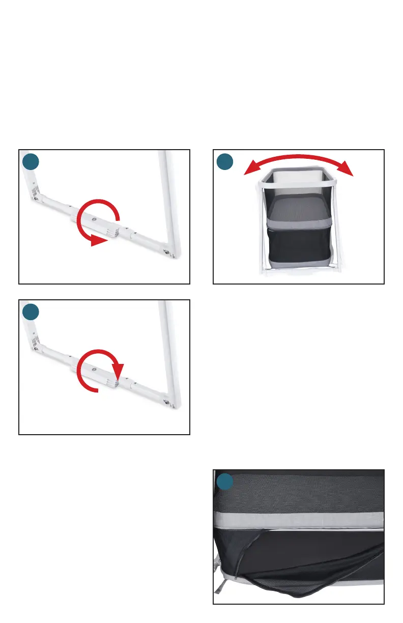 • バシネットの側面にあるチャックを開けます。(8)バシネットのこの領域は、バシネット・モードで収納庫と