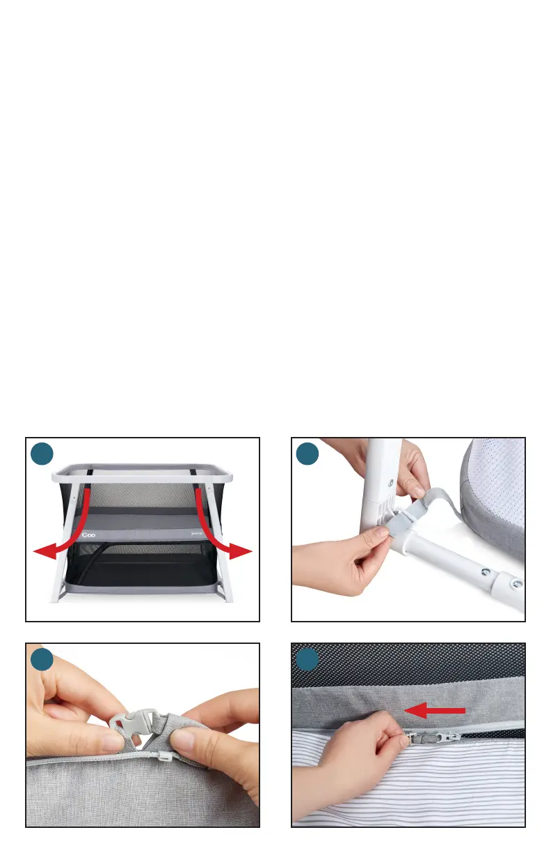 注:収納庫のチャックがベビーサークル・モードで完全に締められていることを確認してください。