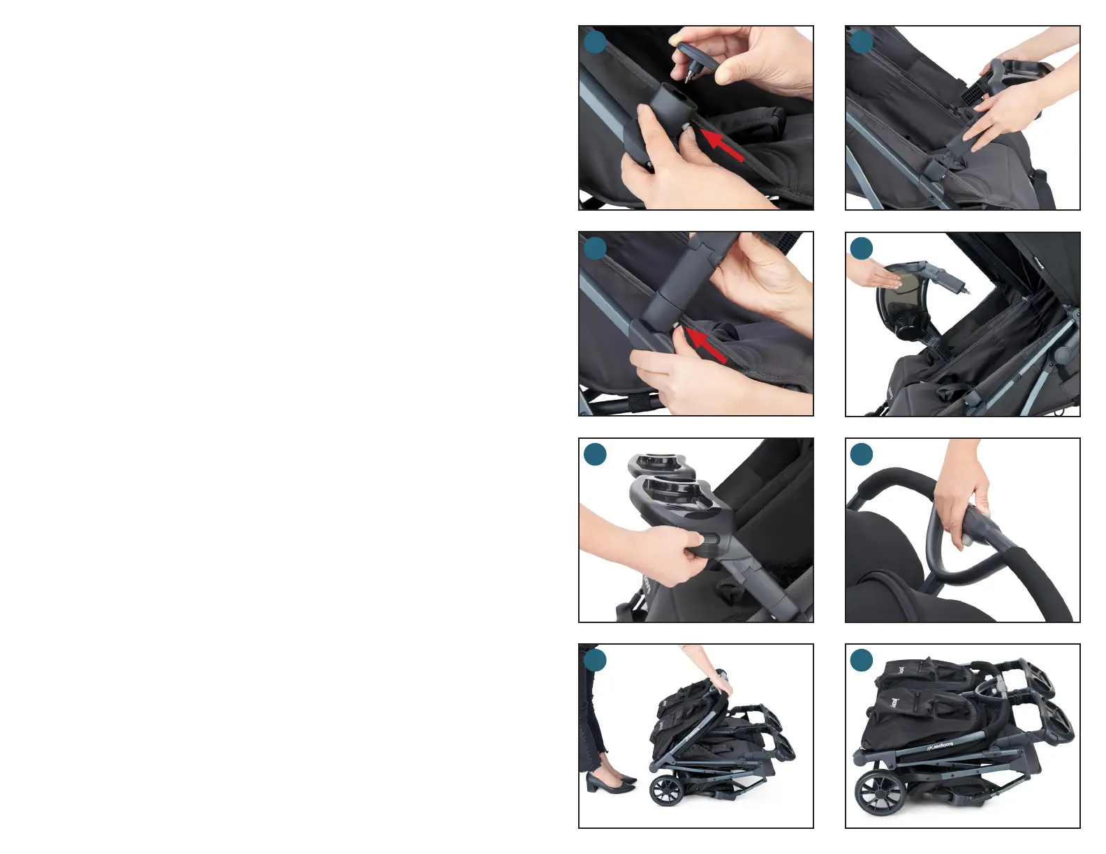se cerrará y trabará automáticamente. (25) NO fuerce el cochecito para cerrarlo.